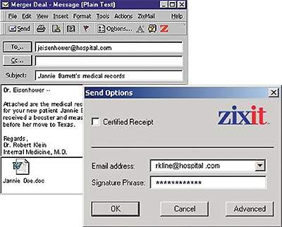 Компания ZixIt продемонстрировала систему шифрования ZixMail, которая предназначена для шифрования электронной корреспонденции. ZixMail — это программа для просмотра и составления писем, которая работает с большинством почтовых клиентов, включая Microsoft Outlook и Lotus Notes.