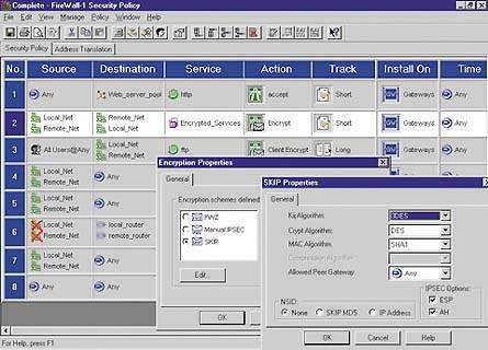 VPN1/Firewall1 Next Generation также дает возможность конфигурировать межсетевые экраны как клиентских ПК, так и серверов. Тем самым создается защищенный туннель — частный канал, по которому через Internet передаются сообщения и файлы. Как правило, межсетевой экран предприятия поддерживает целый набор программ, установленных на шлюзовом сетевом сервере для контроля входящего трафика и предотвращения проникновения «вредного» трафика во внутрикорпоративную сеть компании.