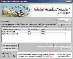 С помощью Acrobat Reader пользователи смогут просматривать текст и изображения, представленные в формате PDF, на устройствах, работающих под управлением Palm OS, в том числе и на компьютерах компаний Palm, Handspring и Sony. Теперь Acrobat Reader способен отображать файлы PDF на маленьких экранах.
