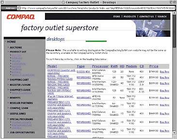 | Compaq проводит ограниченное тестирование процедуры динамического ценообразования на Web-сайте Factory Outlet |