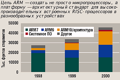 Но дело даже не в количестве. Здесь расцветают бизнес-модели, пока еще достаточно экзотичные. Тех, кто поставил все на производство такой эфемерной продукции, как интеллектуальная собственность (IP — Intellectual Property), не так уж и много — дело достаточно новое и рискованное. Безусловно, свои IP есть у Motorola и Infineon, у Altera и Xilinx — у большинства ведущих полупроводниковых фирм. По этому пути пробует идти отечественный НТЦ «Модуль», о чем мы уже писали. Однако, возможно, самым ярким представителем этого амплуа может служить «чистый», классический производитель IP — английская компания ARM (Advanced Risc Machines).