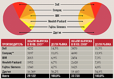 ** Данные по Compaq приведены по прогнозам IDC до того, как эта компания опубликовала свои квартальные финансовые результаты