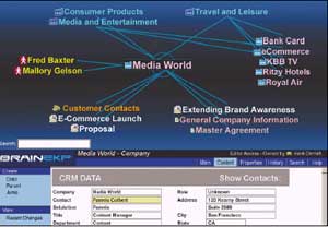 По словам Хьюга, точно так же программное обеспечение будет работать и у корпоративных заказчиков его компании. В центре размещается информация, специфичная для данного проекта. На экране выделены области, предназначенные для организации взаимодействия. Все структурированные и неструктурированные данные связаны в единое целое. Корпоративные пользователи могут создавать специальные шаблоны, описывающие взаимные связи между различными блоками информации. В процессе работы сюда добавляются все новые и новые связи. К примеру, с помощью программного пакета BrainEKP корпоративные пользователи имеют возможность определить отношения, связанные с перспективными сделками. ПО обеспечение позволяет осуществлять поиск нужной информации различными способами, зависящими от особенной работы того или иного специалиста. Доступ к данным не ограничен иерархией папок или каким-то одним алгоритмом.