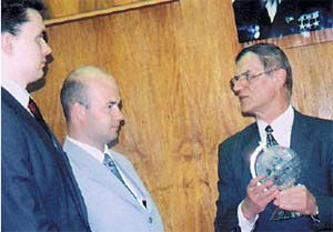 В конце апреля на конференции разработчиков InterSystems Cache DevCon 2002 были подведены итоги международного студенческого конкурса разработчиков Cache Innovator Student Award. Конкурс проводится компанией InterSystems, разработавшей постреляционную СУБД Cache, уже несколько лет, однако организовать его студенческую версию решили в этом году. И самую первую премию завоевали учащиеся российского вуза. Глава представительства InterSystems Николай Кречетов торжественно вручил ректору МИФИ Борису Оныкию и сотрудникам кафедры «Кибернетика» приз — хрустальный глобус.