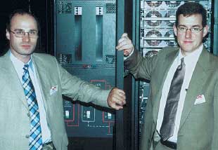 | Юрий Колесов и Крис Колеман считают PowerStruXure важнейшим экспонатом стенда APC. Решения на основе этой расширяемой, резервируемой и управляемой архитектуры обеспечивают работу вычислительных центров самого разного масштаба |