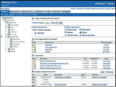 Компания SiteScape, производитель программного обеспечения для поддержки совместной работы, представила Forum Program Management — модуль расширения своего ПО, который позволяет отслеживать процесс реализации портфеля проектов, выполняемых на предприятии.