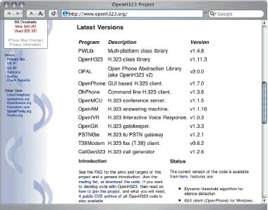 | На Web-сайте авторов проекта OpenH323 Project имеется также программное обеспечение для создания приложений программных телефонов H.323 на базе Linux и сервера конференций, построенного на основе H.323 и Linux |