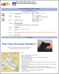На eBay прошел электронный аукцион, в качестве лота на котором было выставлено... государство Ирак. «Страна, удобно расположенная на автомагистрали, соединяющей Узбекистан и Сирию, богатая нефтью, памятными местами, президентскими дворцами и верблюдами», — говорилось в описании. Начальная цена составляла 0,99 долл. Ставки быстро возросли до 99 млн. долл., но большинство из них было отозвано; в конечном счете лот был продан за 1 доллар 80 центов. По данным eBay, ежедневно в системе предлагается около 12 млн. лотов; проверка каждого была бы затруднена, поэтому в компании придерживаются политики невмешательства. Не так давно на eBay оказалась выставленной на продажу редакция Web-журнала ZDNet Tech Update. Этот аукцион, однако, был отменен, после того как продавец получил ноту протеста от владельца электронного издания.