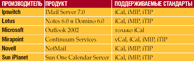 Сегодня все больше производителей систем обработки сообщений приводят свои средства ведения календарей в соответствие с требованиями стандартов, в частности стандарта iCal