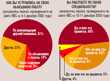 По данным исследования Санкт-Петербургского кадрового агентства «Аркадия++», около 30% создателей программного обеспечения находят работу по рекомендациям знакомых и 20% через внешних посредников, включая рекрутинговые агентства. Половина же приходят к работодателям сами, откликнувшись на объявление в Internet или обучившись на курсах, организованных ими, например в профильных вузах.