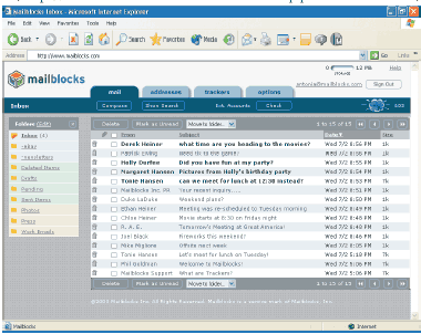 Mailblocks предлагает своим пользователям почтовый ящик объемом 12 Мбайт за 9,95 долл. в год (сравните с 19,95 долл. в год за 10-мегабайтный ящик в системе Hotmail). Подписавшимся на один год предоставляется бесплатная подписка еще на два дополнительно.