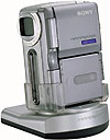 Цифровая видеокамера Sony DCR-IP1K с 10-кратным (!) оптическим зумом по размерам чуть крупнее колоды карт; ее габариты — 39x69x91 мм, вес — 230 г. Добиться подобной компактности удалось за счет миниатюризации объектива, печатной платы и лентопротяжного механизма. Ряд разъемов перенесен на док-станцию, которая оснащена, в частности, коннекторами S-Video, USB и i.Link. Разрешающая способность ПЗС-матрицы камеры — 1,1 млн. пикселов. Устройство снабжено слотом Memory Stick Duo, в который можно установить карту для хранения статичных изображений.