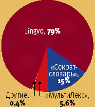 ЦифрыПо оценкам аналитической службы ABBYY, словари Lingvo используют более 4 млн. человек во всем мире. Российский рынок электронных словарей выглядит следующим образом: Источник: опрос журнала "Мир ПК", 2002 год |