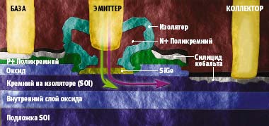 Транзисторы КМОП в производстве дешевле, и именно на их долю приходится основная вычислительная нагрузка в коммуникационных микросхемах. По словам Шахиди, поставив перед собой цель улучшить производительность этих устройств, в IBM нашли способ интегрировать биполярные транзисторы на подложках, выполненных с применением технологии SOI (кремний на изоляторе). Напомним, что эту технологию IBM уже довольно широко применяет при изготовлении микросхем, а компания AMD использует ее в новых 64-разрядных процессорах Opteron и Athlon 64.