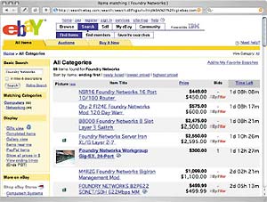 | Эффективность покупок, сделанных на торгах eBay, где можно найти коммутаторы и маршрутизаторы Cisco Systems и Foundry Networks, серверы Sun и даже телефонные коммутаторы Lucent Technologies, бывает сравнима с приобретением новой вещи стоимостью в целый доллар за 10 центов или даже меньше |