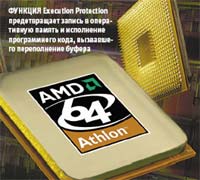 Функция Execution Protection предотвращает запись в оперативную память и исполнение программного кода, вызвавшего переполнение буфера. Задействовать этот механизм, который уже сейчас поддерживается 64-разрядными процессорами Athlon 64 и Opteron, можно будет после выпуска корпорацией Microsoft пакета обновлений и дополнений Windows XP Service Pack 2. Его выход ожидается во втором квартале текущего года.