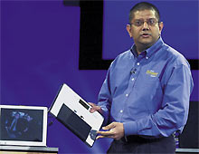 | Год назад Анандом Чандрасекером был представлен «концепт-ноутбук» под кодовым названием Newport с возможностью преобразования в планшетный ПК. На нынешнем форуме как доказательство того, что концепция Newport воплощается в жизнь, был продемонстрирован ноутбук китайской компании Lenovo под кодовым названием Vela |