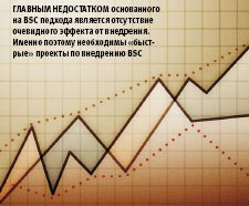 | Главным недостатком основанного на BSC подхода является отсутствие очевидного эффекта от внедрения. Именно поэтому необходимы «быстрые» проекты по внедрению BSC |