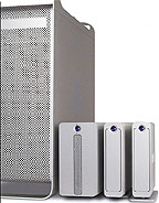 ВНЕШНИЙ НАКОПИТЕЛЬ Bigger Disk, выпущенный компанией LaCie, имеет весьма внушительную емкость — 1 Тбайт. Накопитель можно подключить к ПК по интерфейсам FireWire или USB. В Mac OS, начиная с версии 9.х, и в Windows 2000/XP устройство распознается автоматически, не требуя драйверов. Технологически накопитель выполнен по принципу RAID-массива, состоящего из четырех жестких дисков емкостью по 250 Гбайт каждый. Размеры устройства — 173x88x268 мм, вес — 5 кг. Также доступен внешний накопитель Big Disk вместительностью 400 Гбайт.