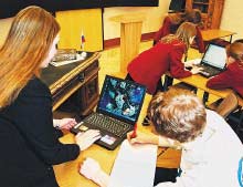 Не за горами время, когда школьники будут выходить с ноутбука в Internet для поиска справочной информации, делать домашнее задание в любом удобном месте на том же мобильном компьютере и иметь постоянный контакт с учителем и родителями по беспроводным каналам. Администрация школы сможет через компьютерную сеть общаться с учителями, учениками и их родителями. Совещания можно будет проводить, даже не вызывая участников в директорский кабинет. Об этом мечтали участники презентации «мобильного класса будущего», состоящего из пяти ноутбуков на платформе Centrino и разнообразного дополнительного оборудования, который был подарен корпорацией Intel петербургской гимназии № 166. Кроме того, в гимназии за счет американской корпорации создана зона доступа в Сеть по технологии Wi-Fi, которая покрывает большую часть двух этажей школы. Хот-спот создан силами сотрудников компании ComSet, а зона действия расширена компанией «ПетерСтар». Всего на создание «мобильного класса» израсходовано 12 тыс. долл. Эти деньги были выделены в виде гранта директору гимназии № 166 Игорю Карачевцеву как победителю всероссийского конкурса «Учитель года-2003».