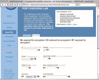 | На Web-сайте Port Knocking Lab можно поэкспериментировать с процессом генерациии и расшифровки секретной последовательности «стуков» |