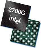 Intel анонсировала также мультимедийный акселератор 2700G. Данная микросхема, фигурировавшая ранее под кодовым наименованием Carbonado, предназначена для установки в смартфоны и КПК, которым требуется увеличение производительности при выполнении сложных приложений. Пользователи смогут одновременно просматривать на экране устройства два изображения. Такая возможность идеально подходит для проведения видеоконференций и организации презентаций непосредственно на беспроводном устройстве.