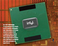 | За счет перехода в 0,09-микронных Pen??ti????um M к более совершенной технологии изготовления по сравнению с первым поколением этих процессоров удалось существенно повысить плотность размещения транзисторов на кристалле |