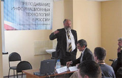 Не умаляя значения практической составляющей и учета потребностей отрасли в процессе подготовки молодого ИТ-специалиста, проректор МГУ Александр Михалев в своем выступлении подчеркнул, что традиционная сильная сторона отечественного образования — его фундаментальность. Доклад был посвящен разработанному на мехмате и химфаке МГУ проекту преподавания информатики для непрофильных специальностей, однако предложенные в нем идеи, несомненно, актуальны и для подготовки профессионалов по компьютерным наукам. Михалев отметил необходимость тесной связи университетских курсов математики и информатики, подчеркнув, что глубина преподавания информатики находится в прямой зависимости от той математической базы, которую получают студенты. Ориентация на ИТ становится одним из основных приоритетов развития современной математики, подобно тому как в свое время во главу угла ставились задачи ядерной физики или космических исследований. По мнению Михалева, образование в идеале должно иметь возможность отвечать на запросы общества и индустрии на 15-20 лет вперед, и это невозможно реализовать с опорой только на академические программы, потому так важно сотрудничество вузов и компьютерных компаний. Но при этом прочная фундаментальная составляющая позволит выпускнику в любой узкоспециализированной области работать с гораздо большей эффективностью, поскольку он будет «готов к решению задач, а не к использованию известных фактов».