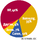 В черно-белом цветеДоли рынка поставщиков монохромных лазерных принтеров в России в 2003 году |