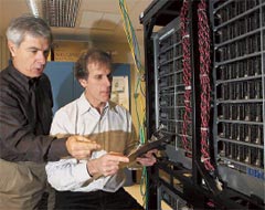 | Билл Пуллейбланк, директор по разработке серверных систем IBM Research и его сотрудник Шон Холл с прототипом Blue Gene L |