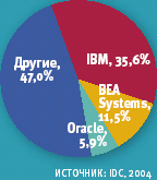 Лидером рынка с большим отрывом является IBM; также в первую тройку входят BEA Systems и Oracle