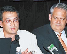 | Игорь Калошин и президент Intel в России Стив Чейз: «Открытие центра — логичный шаг по расширению исследовательской деятельности корпорации» |