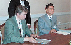 | Валентин Макаров от имени «Форт-Росса» подписывает меморандум о сотрудничестве |