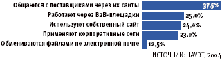 эффективность использования Internet в закупочной деятельности предприятия (при реализации товаров и услуг) 46% (42%) опрошенных, «скорее позитивно» — 43% (55%), а «нейтрально или негативно» — всего 11% (3%). Каналы закупок через Сеть, предпочитаемые отечественными компаниями, распределились следующим образом: