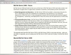 К середине 2006 года корпорация Microsoft планирует выпустить новую версию своего интеграционного программного обеспечения BizTalk Server. Среди нововведений следует отметить поддержку SQL Server 2005 и упрощение функций администрирования.