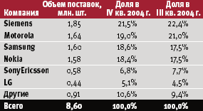 Российский рынок мобильных телефонов стандарта GSM в IV квартале 2004 года