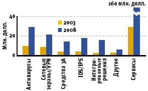 Динамика рынка программного обеспечения для систем безопасности в 2003—2008 годах будет отражать
