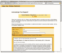 | В петиции, число подписей под которой всего за 10 дней достигло почти тысячи, говорится: «JDO 2.0, расширение существующего стандарта JDO 1.0, не было одобрено. Это нанесет значительный ущерб разработчикам и производителям, использующим JDO. Это нанесет непоправимый ущерб репутации Java Community Process и большой урон сообществу разработчиков Java» |