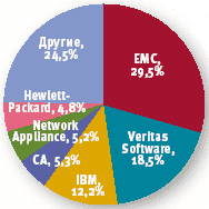 По прогнозам аналитиков Gartner, мировой рынок программных средств управления системами хранения в 2004 году вырос на 12,3%, достигнув 5,6 млрд. долл. Быстрее всего рос сегмент систем управления ресурсами хранения (30,8%); его объем составляет сейчас 612 млрд. долл. К данному, пока еще небольшому, сегменту относят инструменты мониторинга ресурсов хранения и управления емкостью и производительностью платформ хранения. Его бурный рост обусловлен стремлением предприятий усовершенствовать управление имеющимися в их распоряжении емкостями хранения, в том числе автоматизировать некоторые функции управления. Прогнозируемый рост рынка программных средств управления системами хранения в 2005 году будет исчисляться двузначным числом, ориентировочно 12%, и достигнет 6,3 млрд. долл.