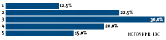 Специалисты IDC предложили 40 менеджерам по ИТ оценить сложность поддержки качества данных систем BI по пятибалльной шкале, где «5» соответствует очень высокой сложности, а «1» — крайне низкой. В целом, результаты опроса соответствуют другой оценке IDC: около 40% ИТ-менеджеров не уверены, что отчеты, которые генерируют информационные системы их предприятий, отражают действительное положение вещей