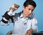 Систему машинного перевода с языка глухонемых изобрел американец Хосе Эрнандес-Ребойяр. Знаки воспринимаются при помощи двух групп датчиков-акселерометров, первая из которых размещена внутри специальных перчаток, вторая — закрепляется на локтях и предплечьях. Датчики идентифицируют движения пальцев, кисти и руки в целом, полученная информация передается на обработку компьютеру, который переводит распознанные жесты в слова. Те воспроизводятся в текстовом виде на дисплее или через синтезатор речи — вслух.