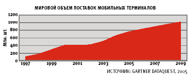 спрос на мобильные телефоны превышает даже самые оптимистичные прогнозы; по оценкам, за 2005 год будет продано 779 млн. устройств — на 16% больше, чем за прошлый. Согласно оценкам, к концу 2009 года населением земного шара будет использоваться около 2,6 млрд. мобильных телефонов.