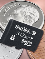 Кроме того, SanDisk продемонстрировала встроенный компонент флэш-памяти емкостью 4 Гбайт, в котором реализована технология TrustedFlash, предназначенная для мобильных телефонов, музыкальных плейеров, персональных мультимедиа-проигрывателей и устройств GPS.