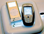 «Перерезать» еще один провод желают в компании Splashpower, созданной исследователями, разработавшими беспроводное зарядное устройство для мобильных телефонов и КПК. Зарядник представляет собой «планшет», над поверхностью которого при включении создается мощное электромагнитное поле. Система работает по принципу индукции: чтобы положенное на планшет «принимающее» устройство могло заряжаться, необходимо наличие в нем катушки индуктивности, соединенной с аккумулятором. Для «несовместимых» устройств планируется продавать специальные адаптеры.