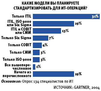 , в 2004 году 12% компаний с миллиардным оборотом использовала ITIL в какой-то мере, а в 30% компаний рассматривали возможность использования.