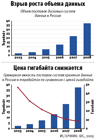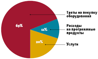 Большая часть расходов на услуги связана с оплатой работы интеграторов по внедрению и техническому сопровождению систем хранения. Аутсорсинг в данной области относится аналитиками IDC не более чем к перспективным направлениям развития этого сегмента рынка