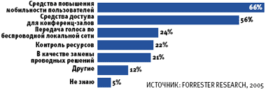 выяснить, для каких приложений они планируют использовать беспроводные локальные сети в течение ближайшего года. Допускалось несколько вариантов ответов