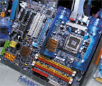 Как и рассмотренная выше модель, GA-G1975X базируется на наборе микросхем Intel 975X, а значит к ней применимо все, что было сказано о поддерживаемых процессорах и графической системе на основе технологии SLI. Но, купив системную плату GA-G1975X, пользователь получает установленный на нее 24-разрядный звуковой процессор Creative Audigy Live!, обеспечивающий гораздо более высокое качество восьмиканального звука, сертифицированного по версии DTS, а также обладающий фирменными технологиями пространственного звучания EAX и EAX Advanced HD.