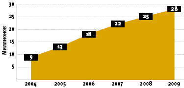 Трафик VOIP растет быстрее, чем трафик коммутируемых сетей, и в 2005 году, по оценкам, на его долю пришлось 16% длительности международных голосовых звонков