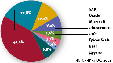 По данным отчета IDC Enterprise Application Software 2005-2009 Forecast and 2004 Vendor Shares за 2004 год, размер российского рынка интегрированных систем управления производством вырос на 52,8% и достиг 194 млн. долл. Причем уже третий год подряд темпы его роста превышают аналогичный показатель ИТ отрасли в целом. Наибольший вклад в динамику внесли продажи лицензий, но уже появились признаки зрелости рынка — увеличение доходов от технической поддержки постоянно растущей клиентской базы. Этот фактор особенно значим для поставщиков, давно работающих на российском рынке и сумевших сформировать широкий круг заказчиков. Несмотря на неоспоримое лидерство западных компаний (SAP, Oracle, Microsoft) на рынке увеличивается доля российских разработчиков. Впервые в отчет IDC вошли показатели «1С» («1С: Предприятие 8.0»). Число же западных поставщиков сокращается в силу их слияния.